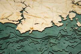 Extremely accurate bathymetric map of Kennebunkport, Maine and surrounding area. This three dimensional map is carved from Baltic birch wood, framed and has a acrylic covering to protect the wood. Professional cartographers are used in the creation of each individual chart in order to insure the utmost accuracy. Some maps come in two sizes in order to fit virtually any area in the home, office or boat. We have charts from areas across the U.S. available on a drop ship basis. This is a great item at an unbelievable price. If you are searching for a particular area, please call or email.