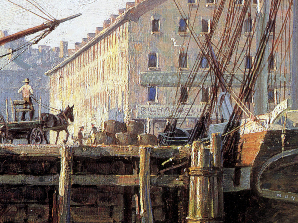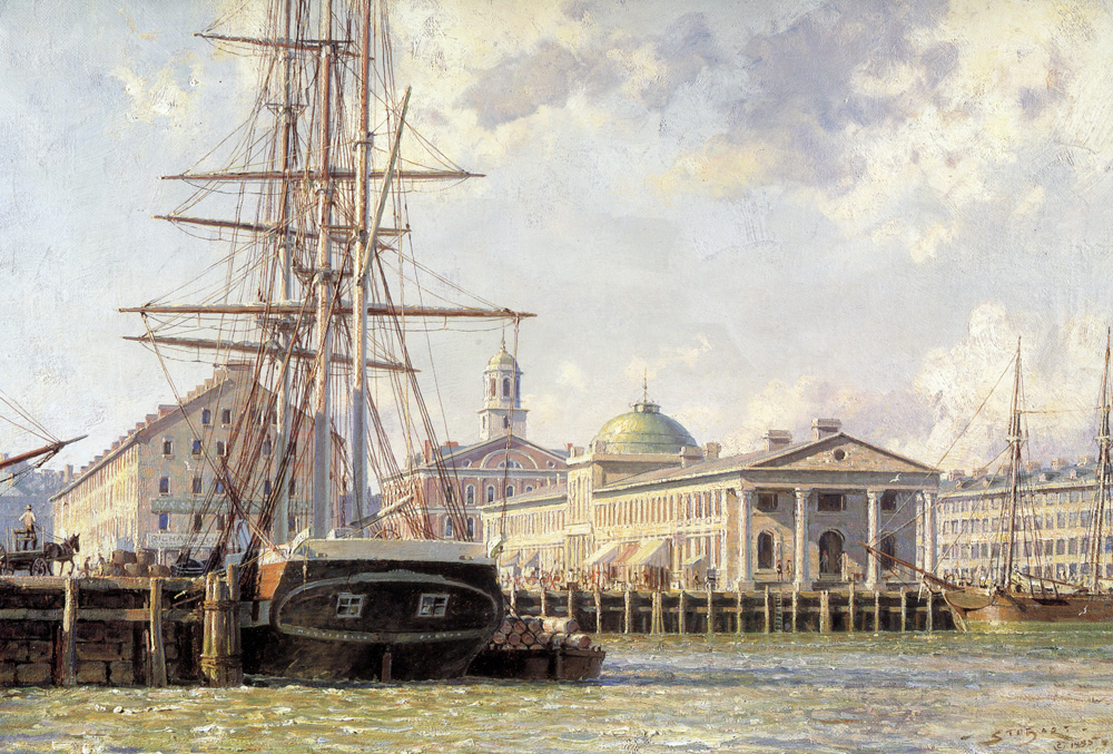 An early view showing the popular Quincy Market area long before Boston's Town Cove was filled in to create land for further development.