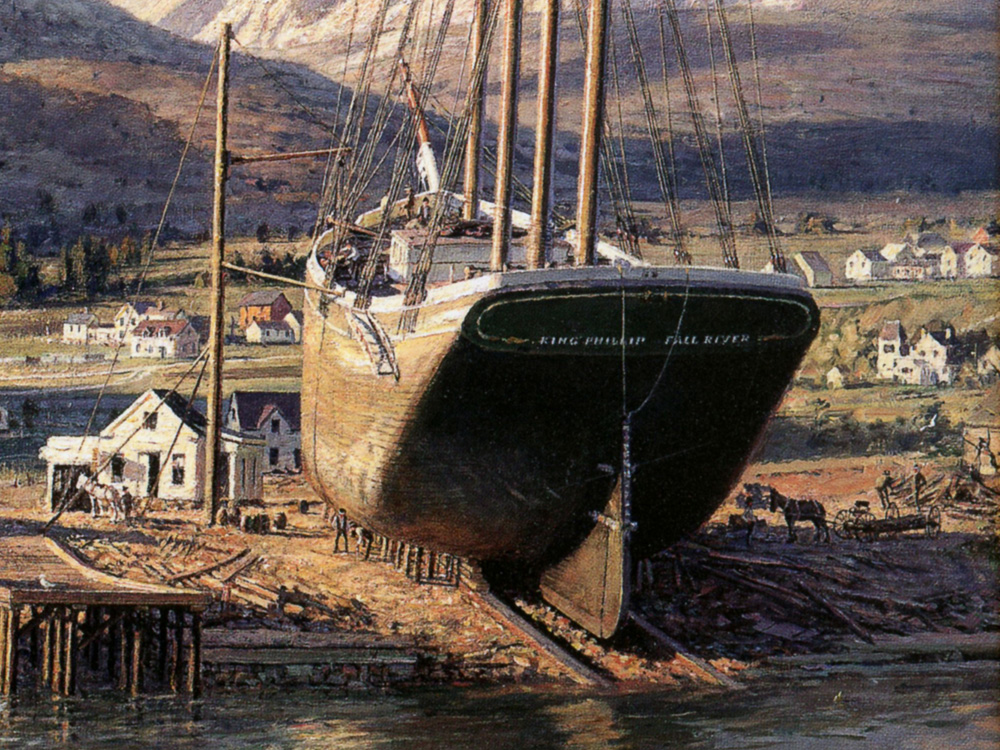 The largest vessel built in Camden to that date, an article in the Rockland Free Press, Oct. 13th, 1886 read: “Lots of splendid vessels have had their first dip into Penobscot waters and the best of these is the King Phillip – the pet of her captain and the pride of Camden.”