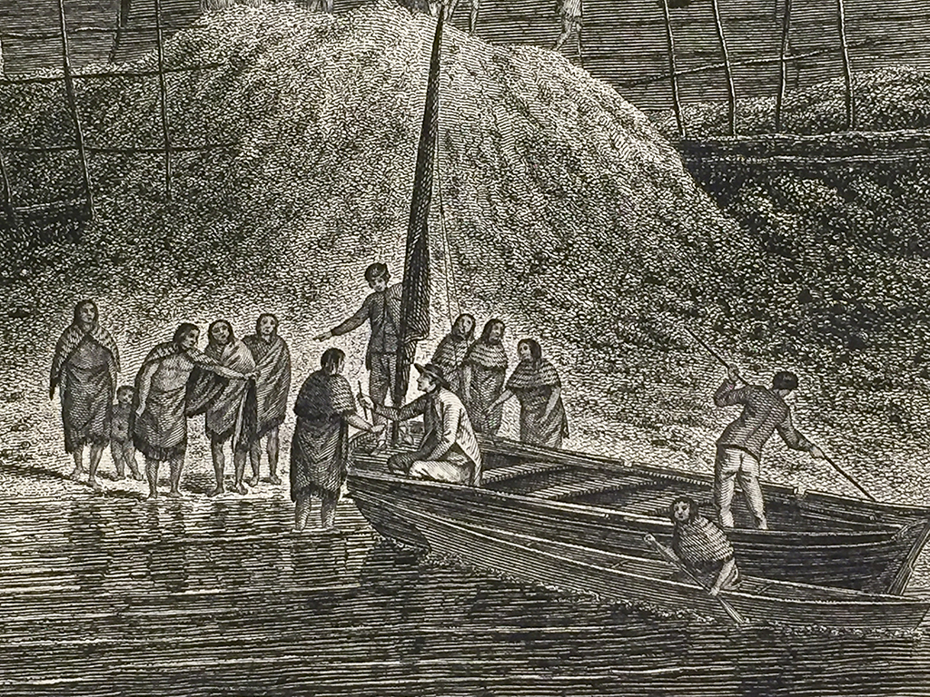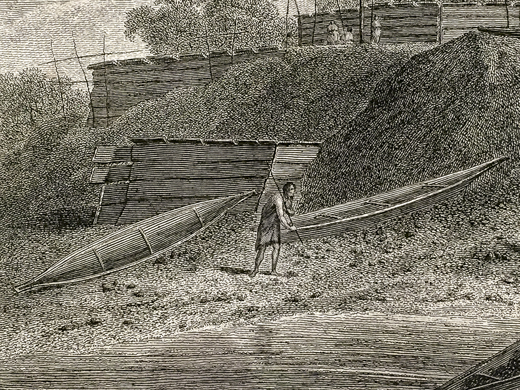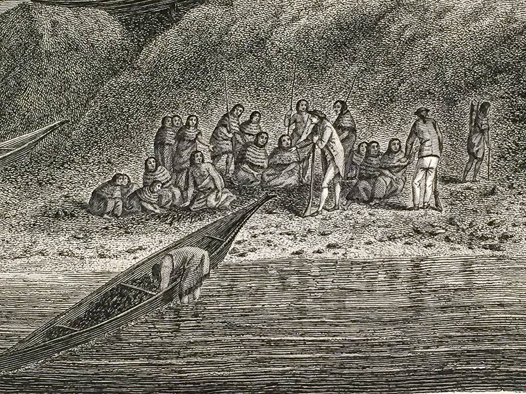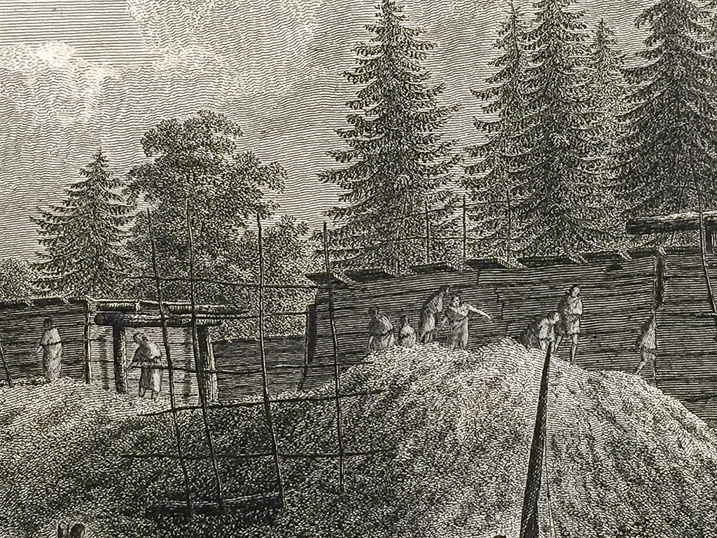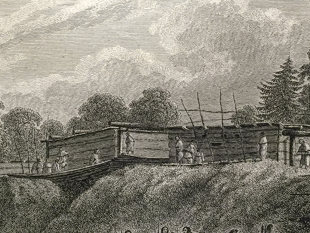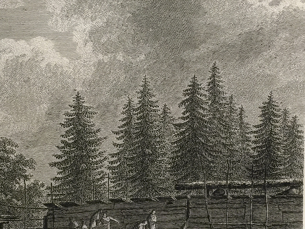 Cook Engraving – A View of the Habitations in Nootka Sound