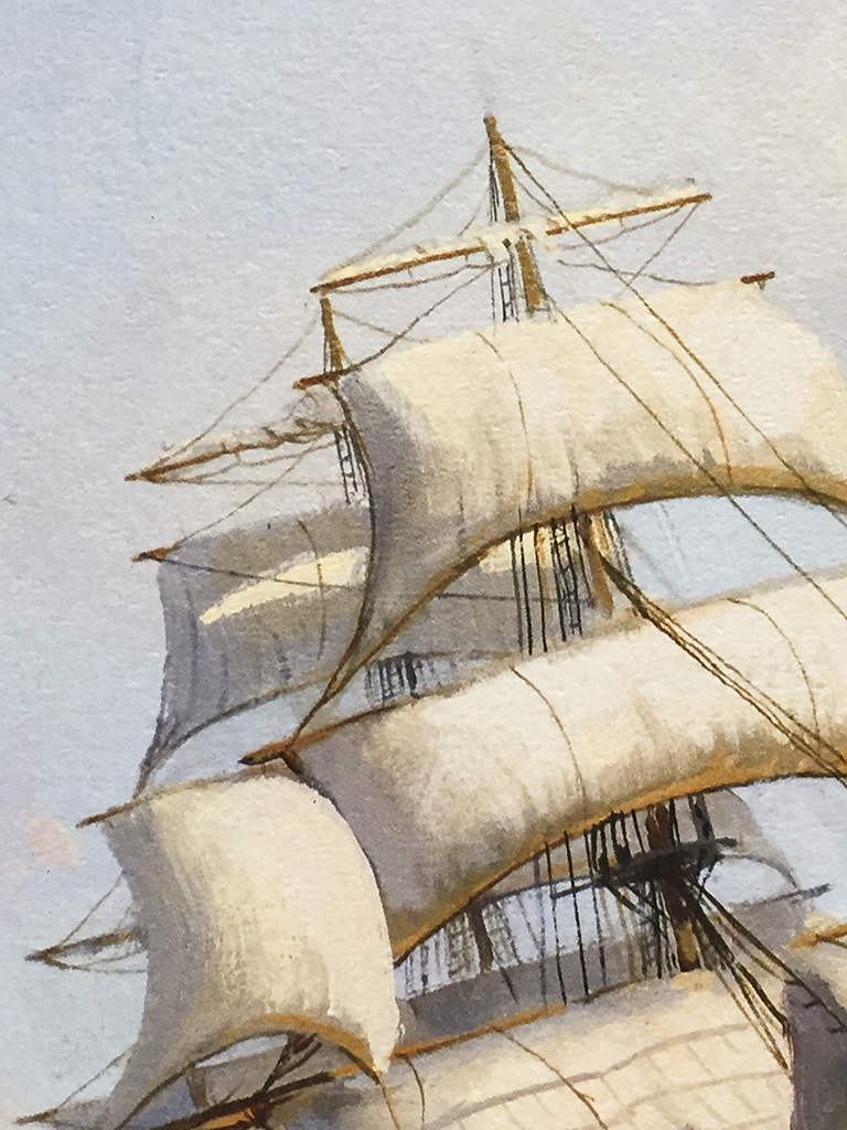 The Golden Eagle, one of the most beautiful clipper ships of the Golden Era of sail, here cuts its way majestically homeward bound from another sea adventure.